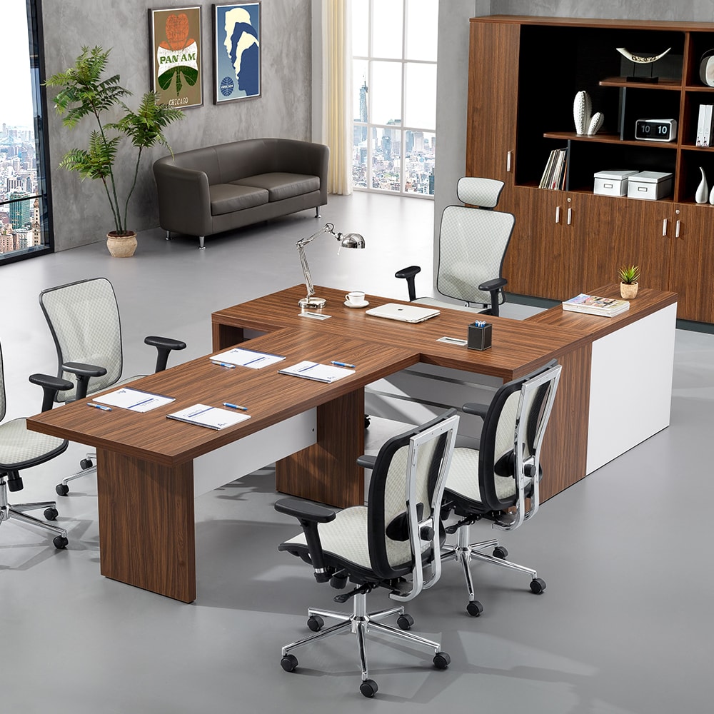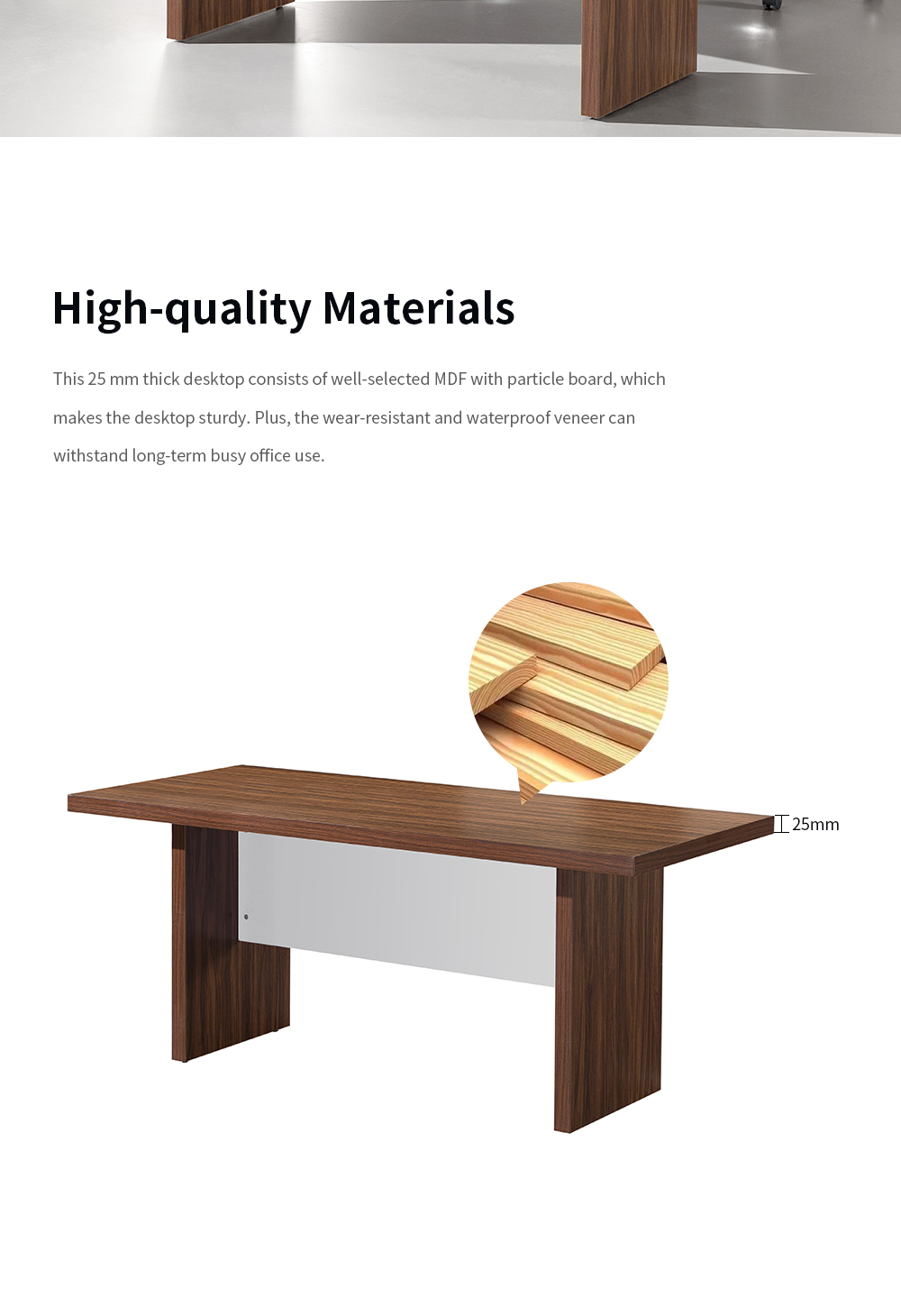 This 25 mm thick desktop consists of well-selected with particle board, which makes the desktop sturdy. Plus, the wear-resistant and waterproof veneer can withstand long-term busy office use.