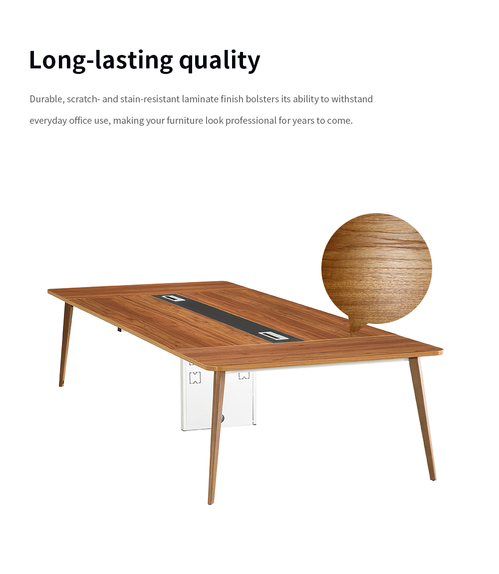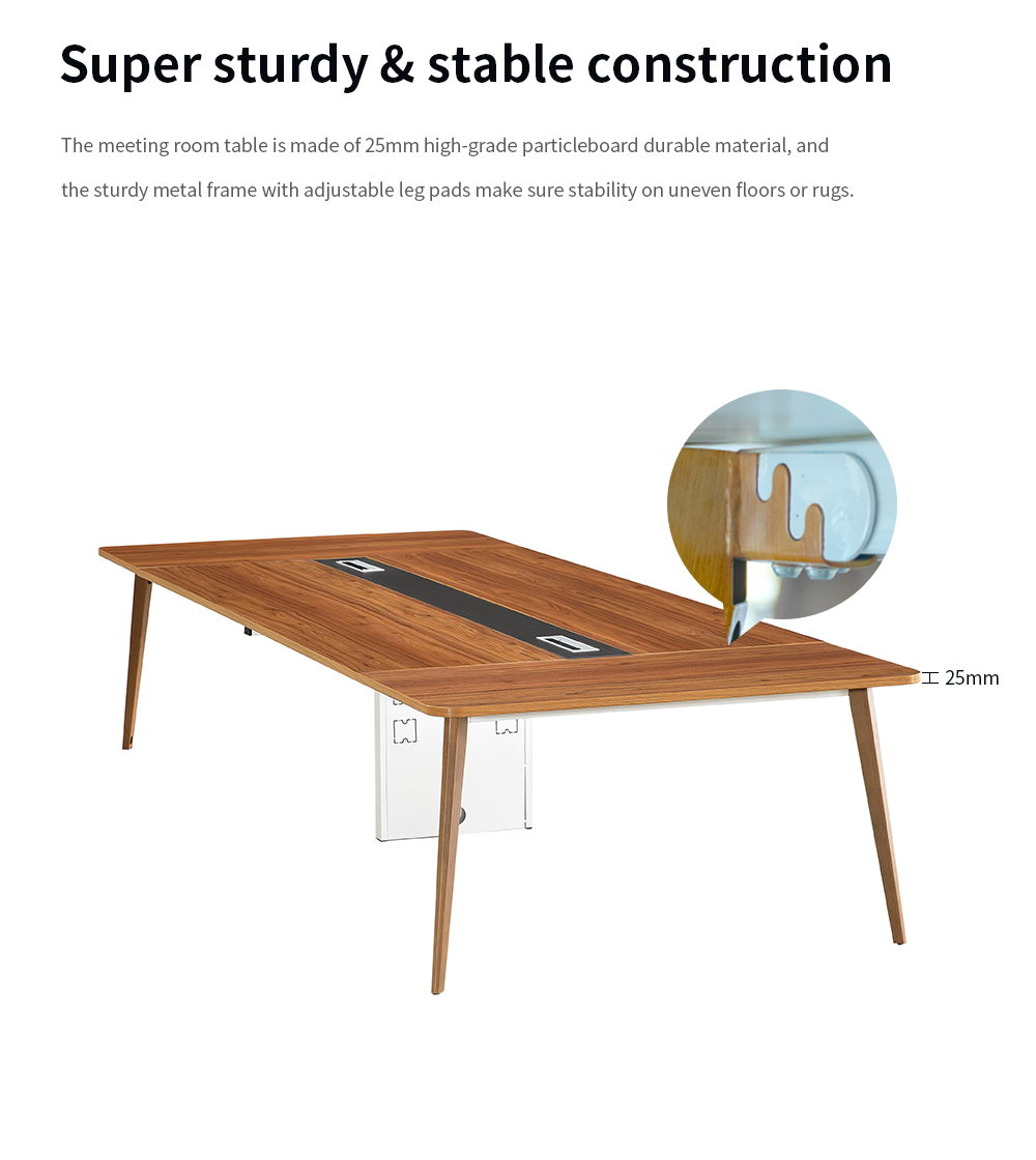 The conference table boasts a sturdy 2.5cm thickened desktop panel, ensuring durability and resilience for all your important meetings.