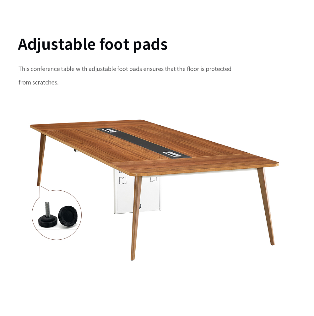 This conference table with adjustable foot pads ensures that the floor is protected from scratches.