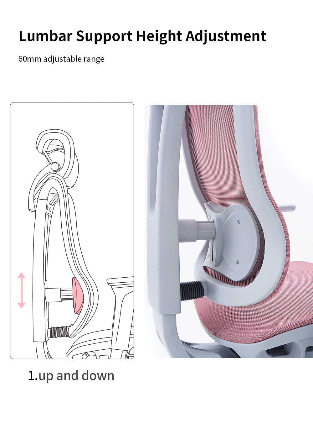 Seat Height: Press the button to adjust the seat height via the class 3 gas lift, with a lifting range to match different desk heights, meeting personalized comfort needs.