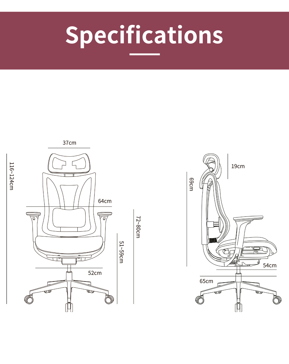 Ergonomic Design:Adjustable headrest, height-adjustable backrest (adaptive lumbar) and sliding mesh seat offer full neck/back/lumbar support to reduce long-sitting fatigue.