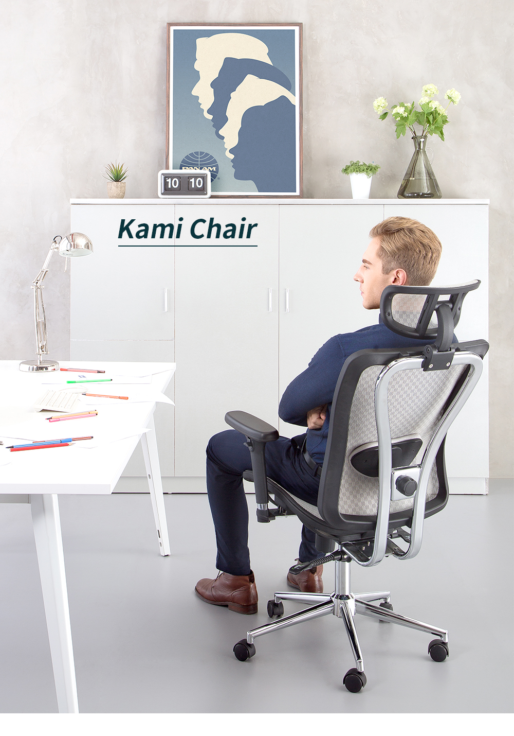 Lumbar Support: The Kami office chair's lumbar pillow can be adjusted up and down, and front and back, ensuring your lumbar spine is comfortably supported.