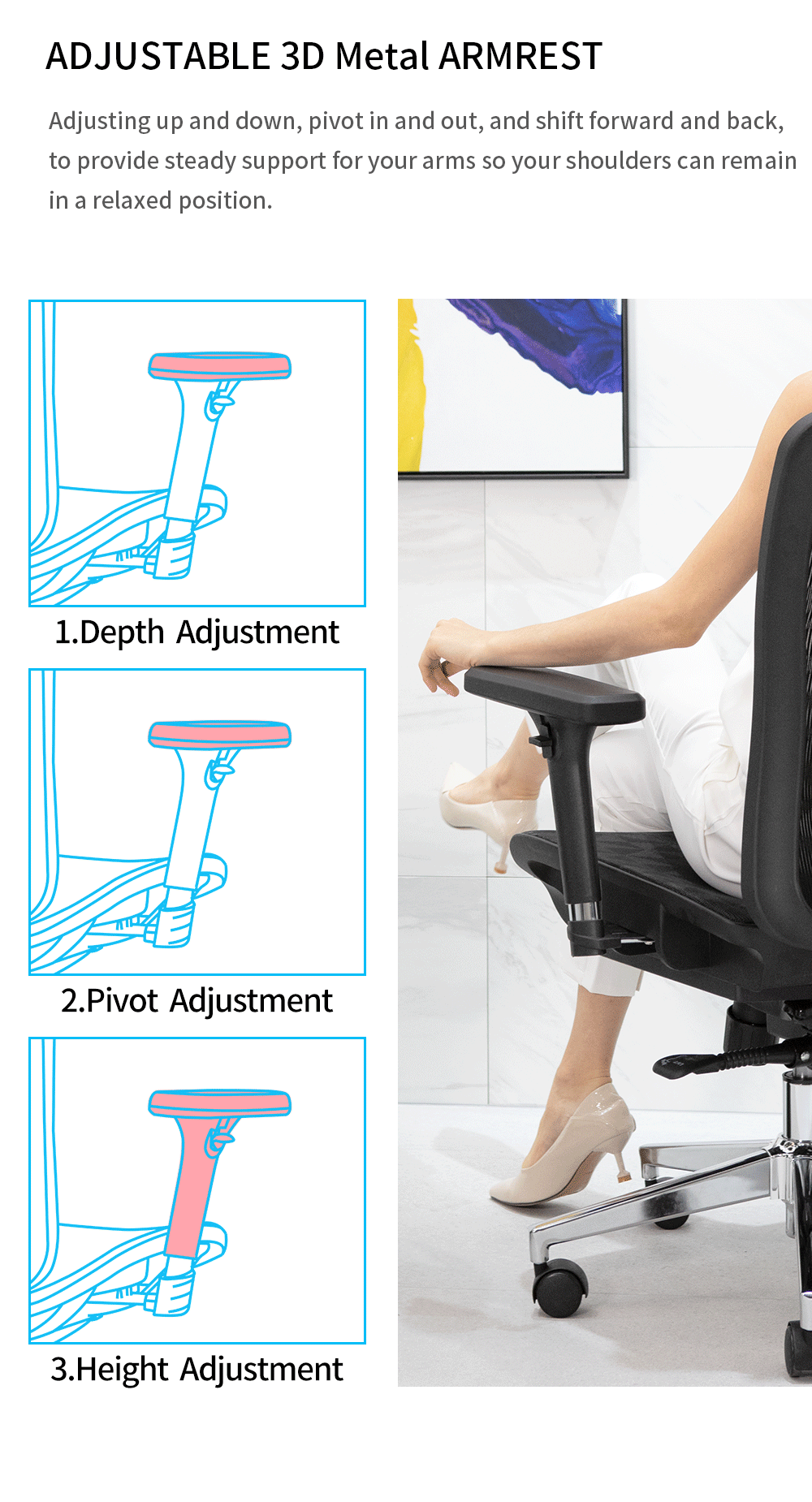3. Adjustable 3D ARMREST