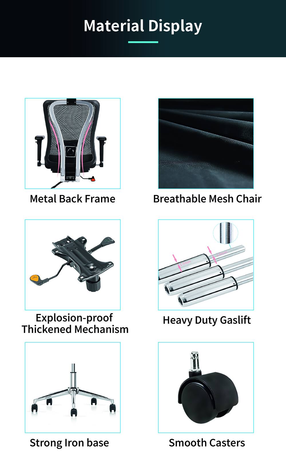 7. Heavy Duty Gas Lift & Strong Iron base & Smooth Casters