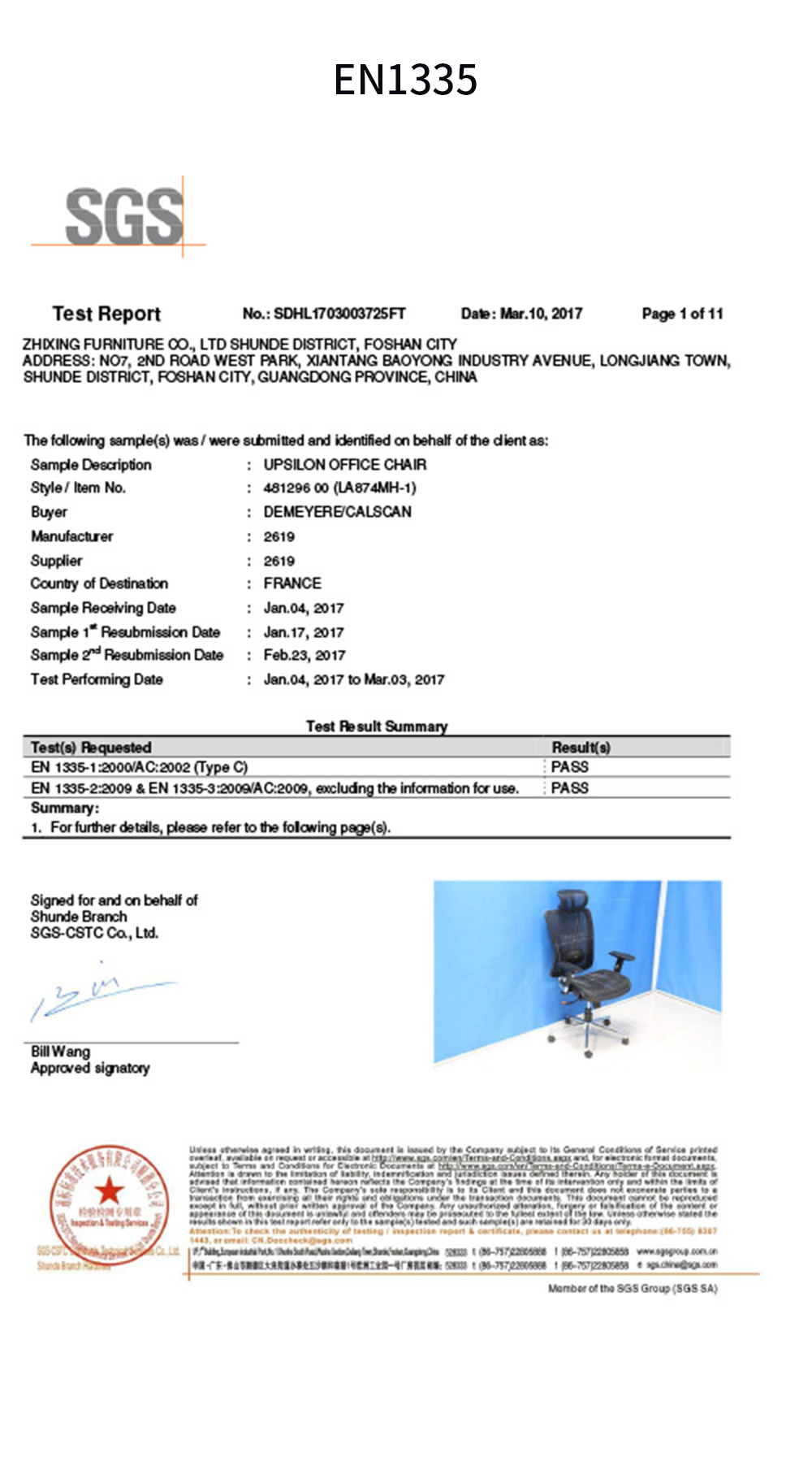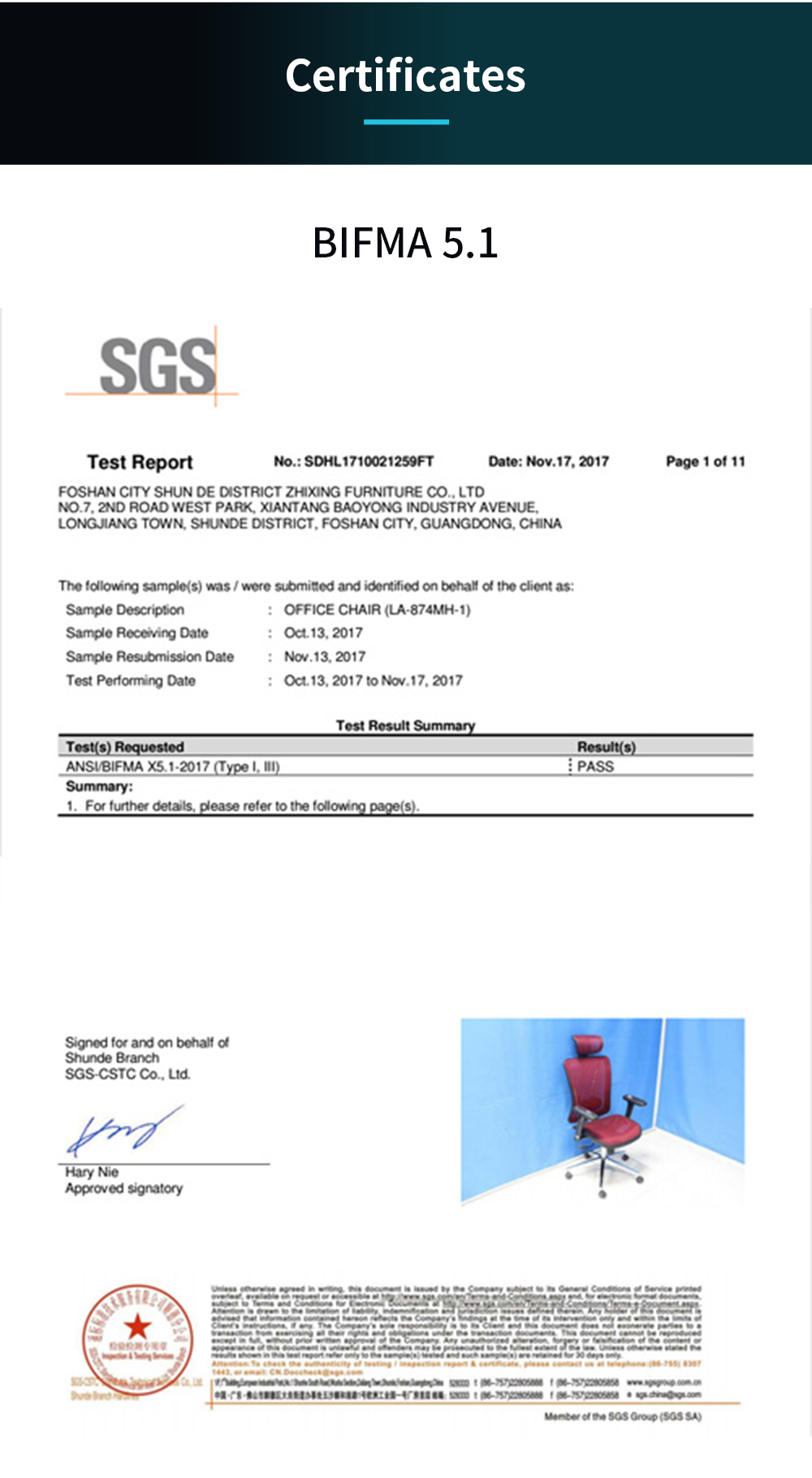 The Kami computer office chair has passed BIFMA 5.1 and EN 1335 tests by SGS.