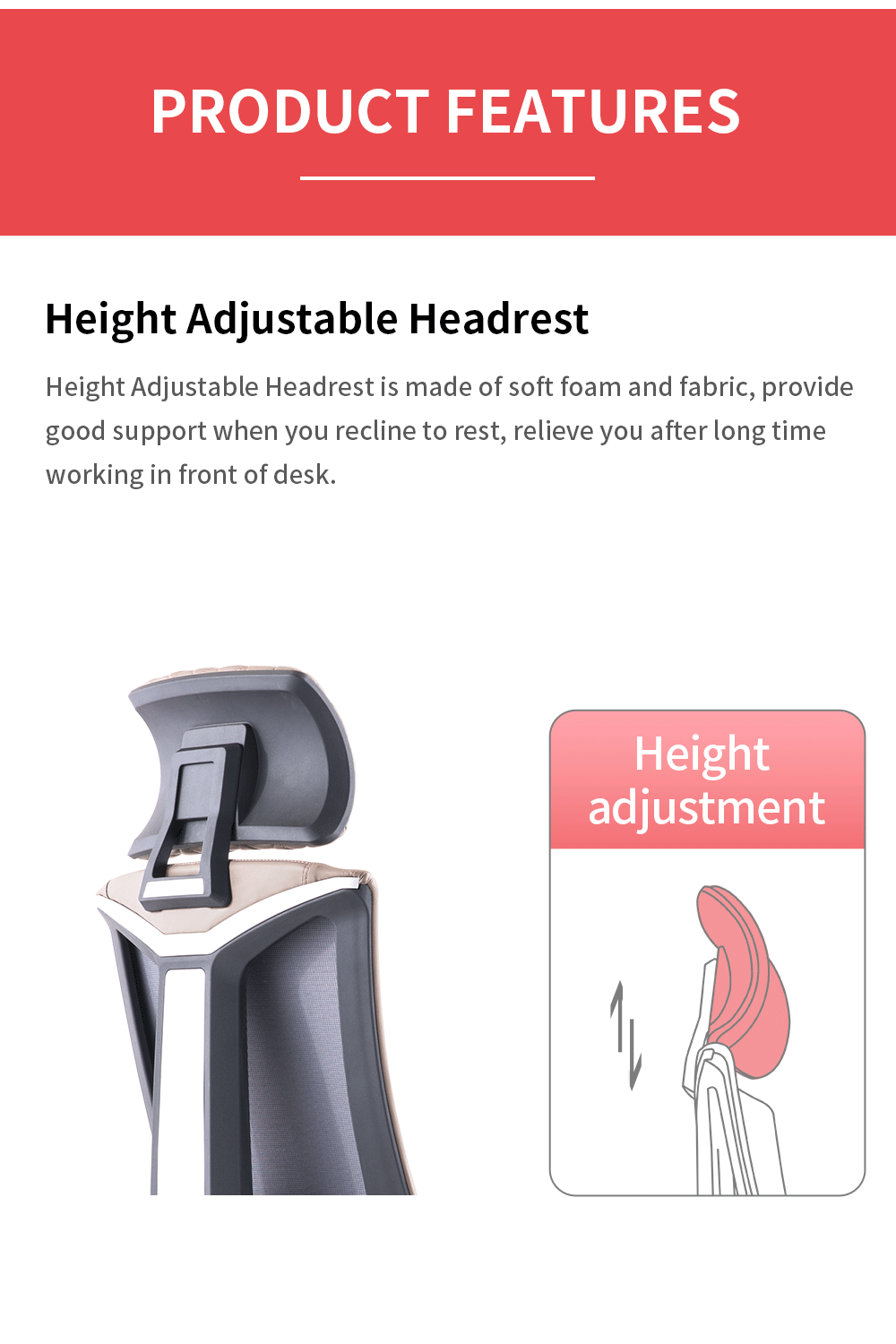 Height Adjustable Headrest is made of soft foam and fabric, provide good support when you recline to rest, relieve you after long time working in front of desk.