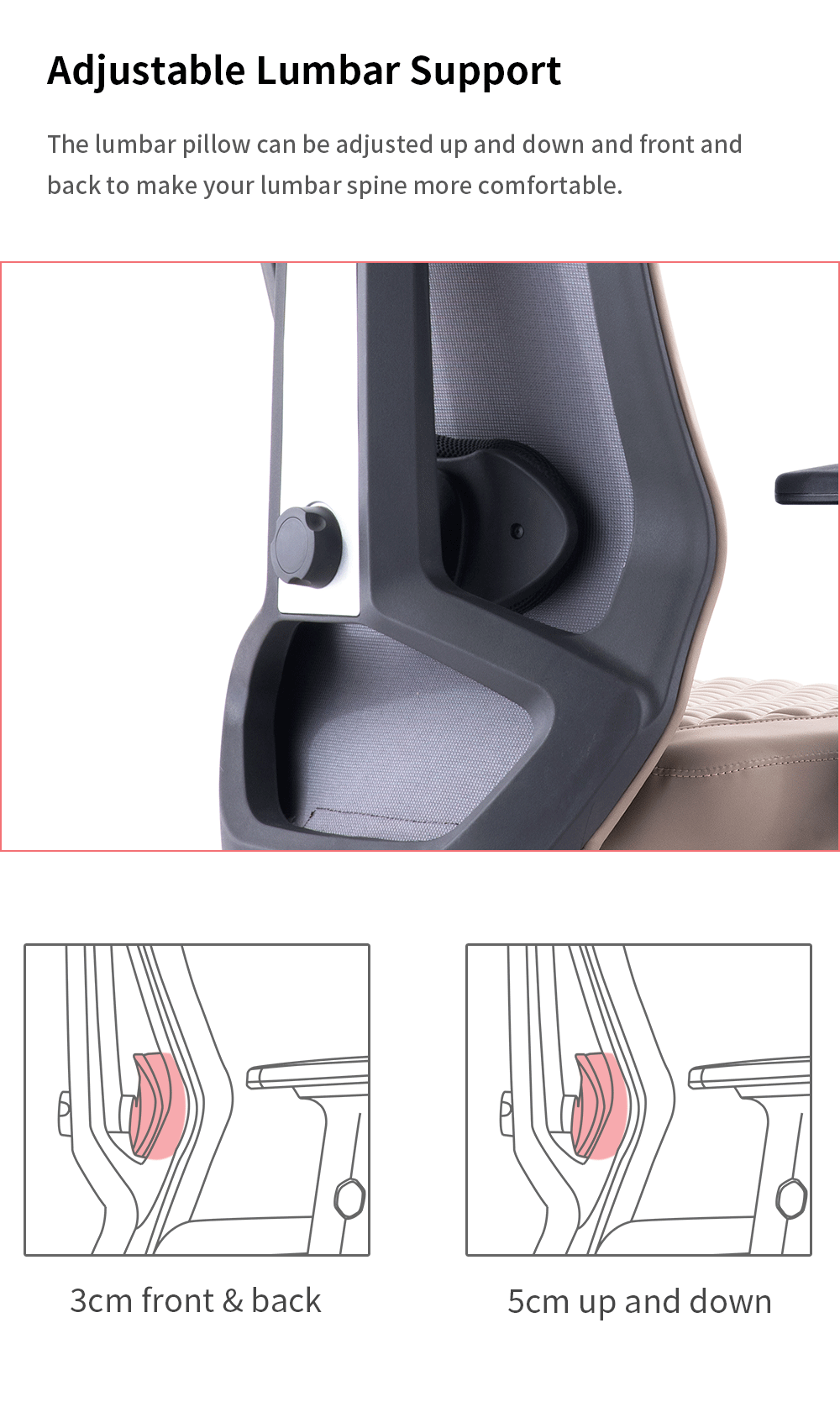 The lumbar pillow can be adjusted up and down and front and back to make your lumbar spine more comfortable.
