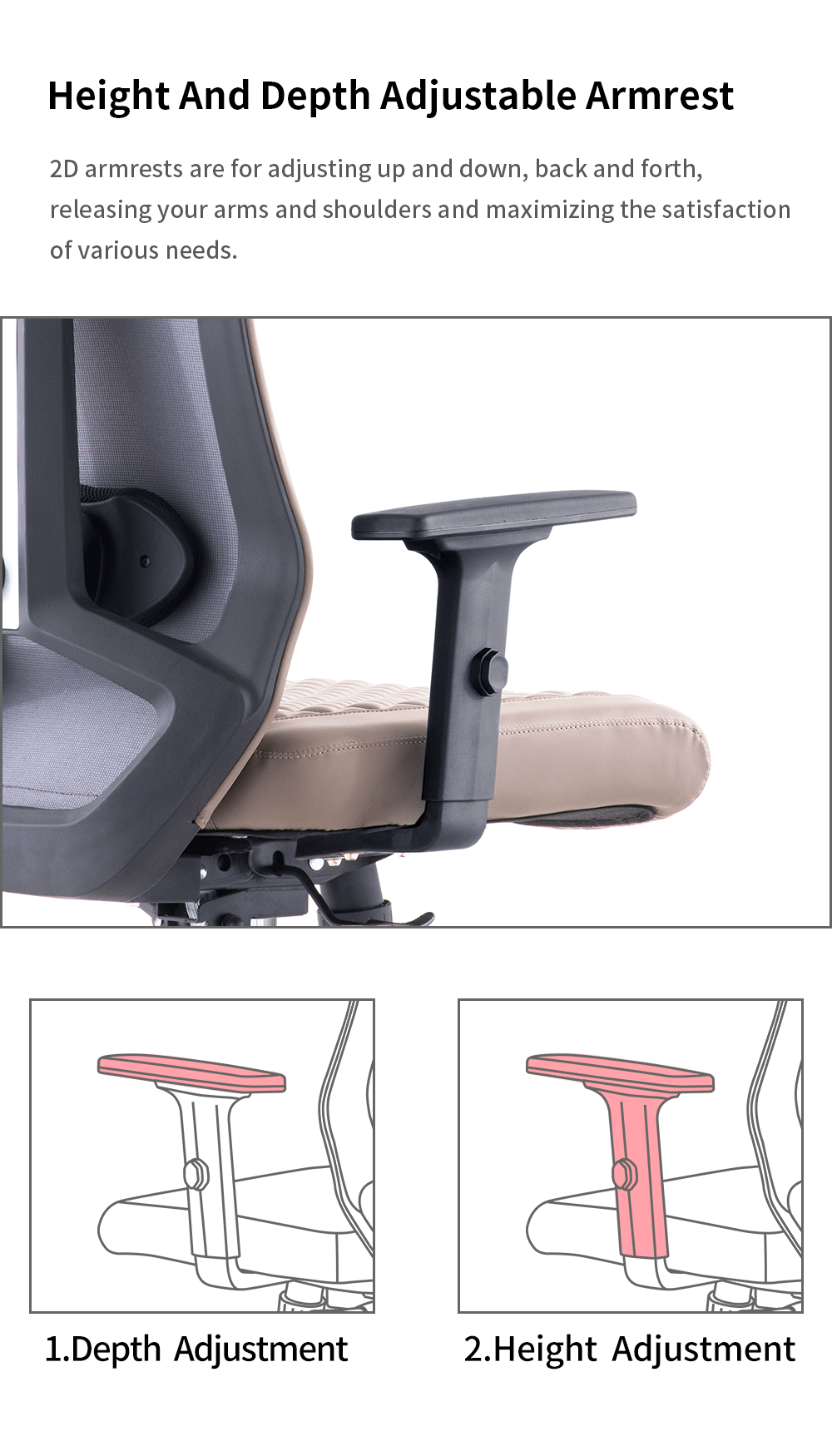 2D armrests are for adjusting up and down, back and forth, releasing your arms and shoulders and maximizing the satisfaction of various needs.