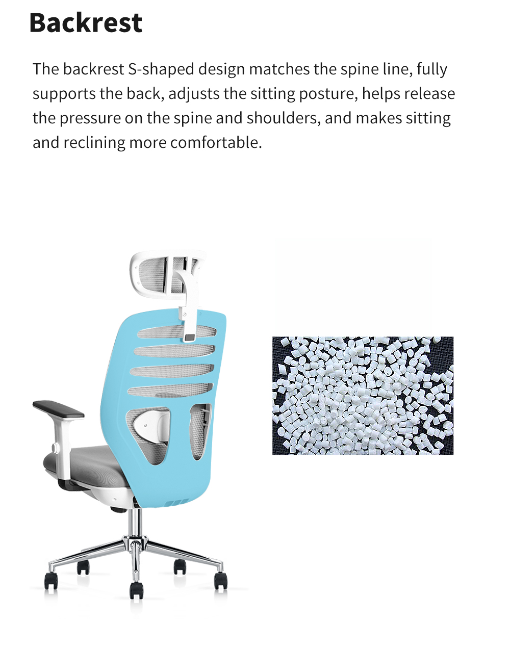 The backrest's S-shaped design aligns with the spine, providing full back support, improving sitting posture, relieving pressure on the spine and shoulders, and enhancing overall sitting and reclining comfort.