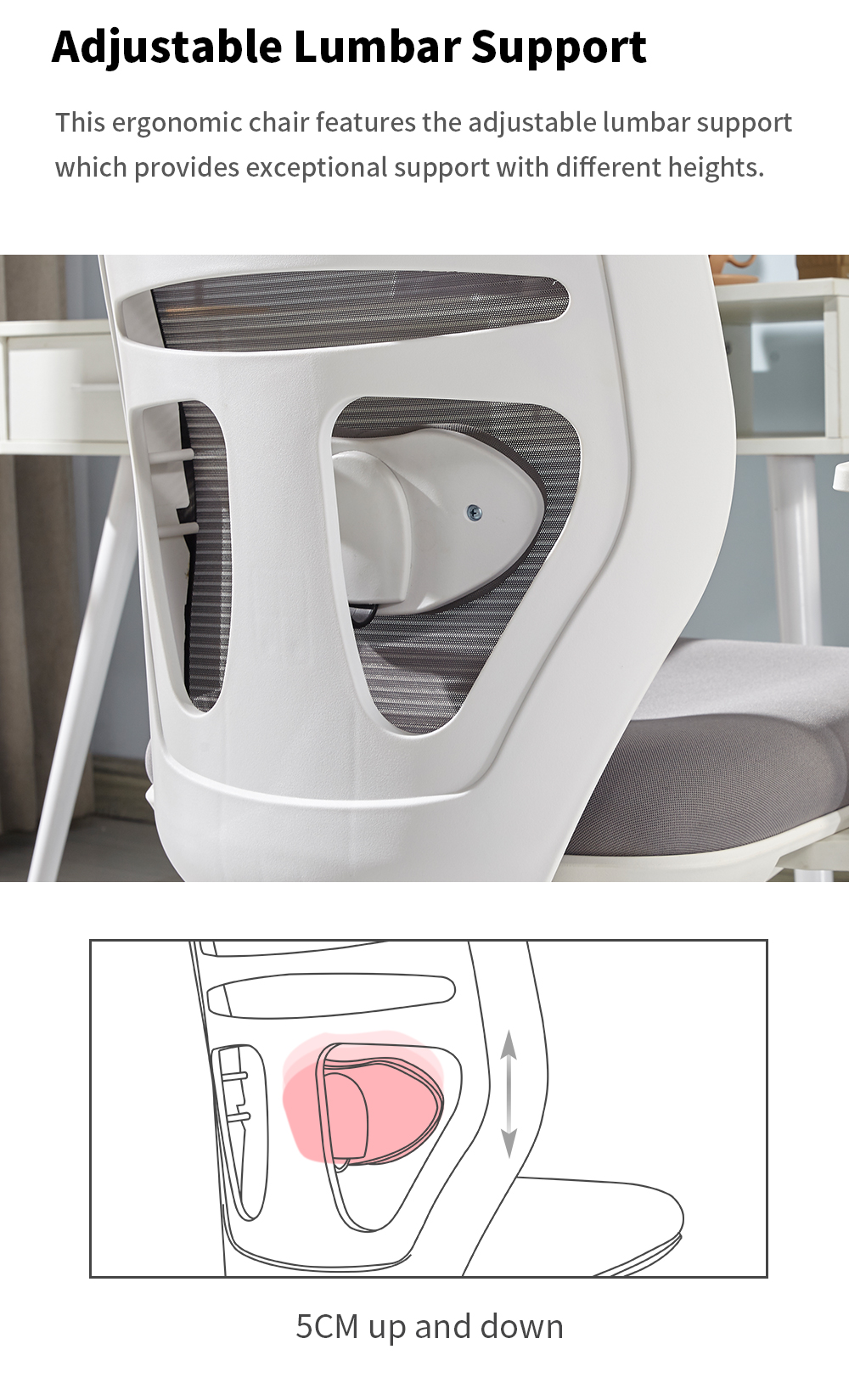 This ergonomic office chair features adjustable lumbar support, delivering exceptional support at various heights.