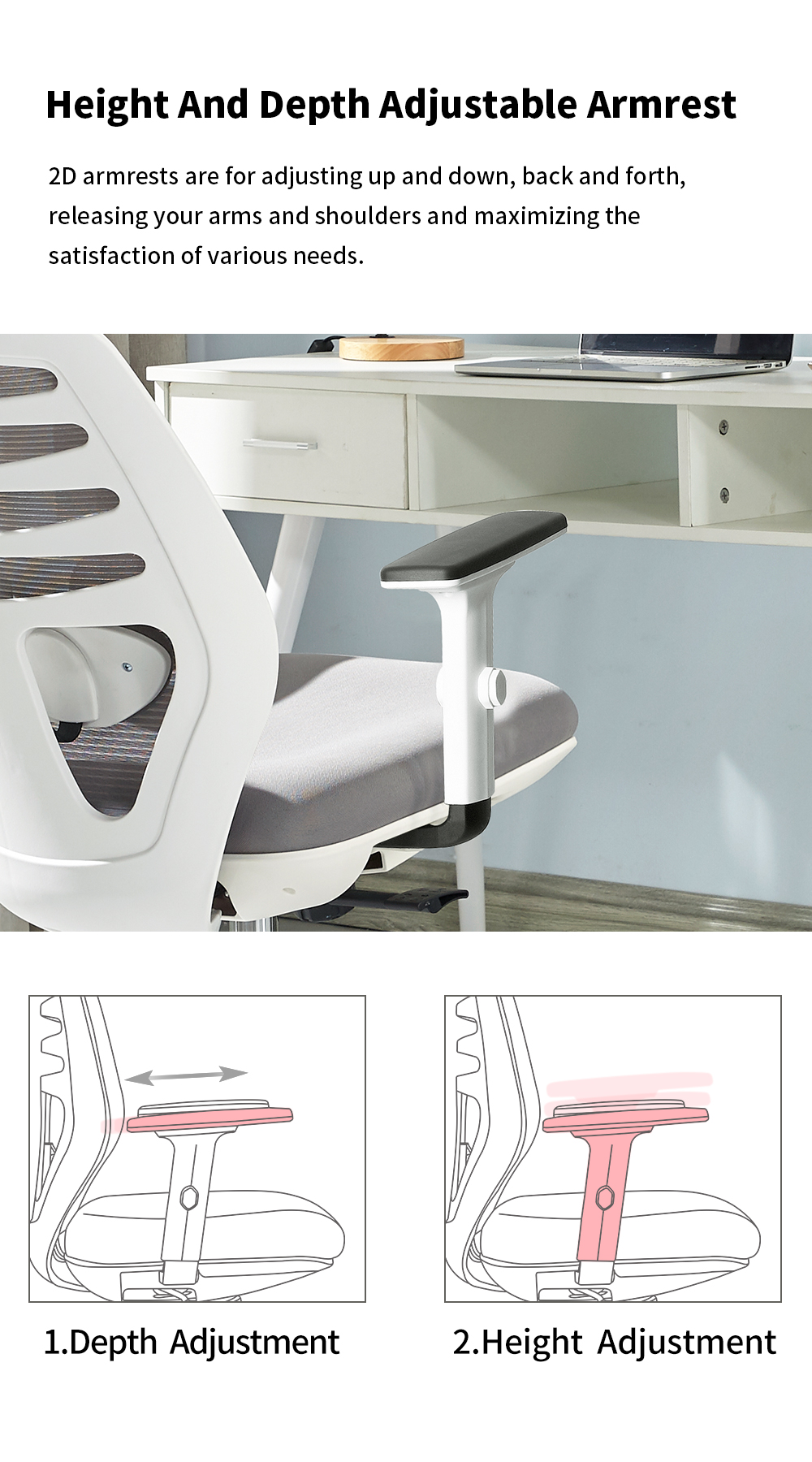 2D armrests can be adjusted up and down, forward and backward, allowing for the release of tension in your arms and shoulders, and catering to various preferences.