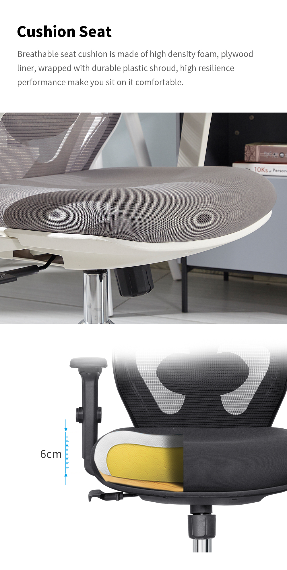 Durable & Reliable: The Mego ergonomic desk chair's caster wheels and gas lift have passed the BIFMA test by SGS, and the metal base has been improved for safety and stability.