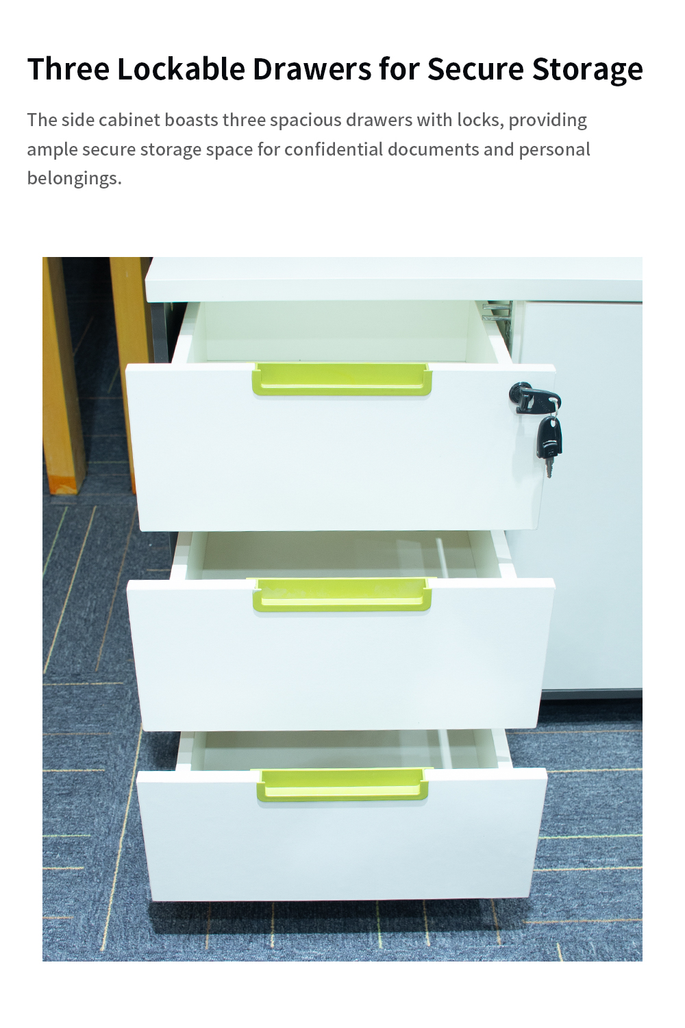 The side cabinet boasts three spacious drawers with locks, providing ample secure storage space for confidential documents and personal belongings.