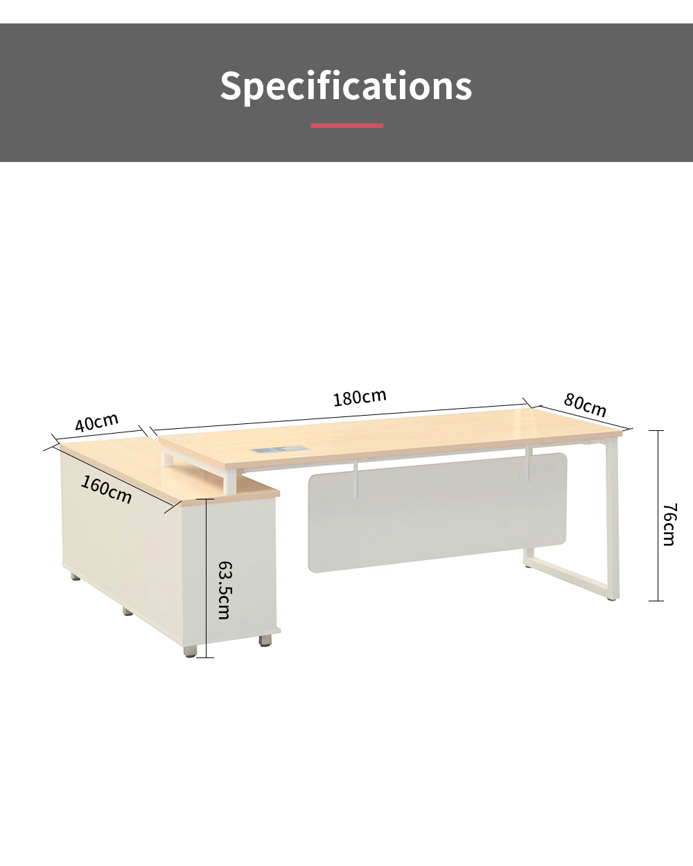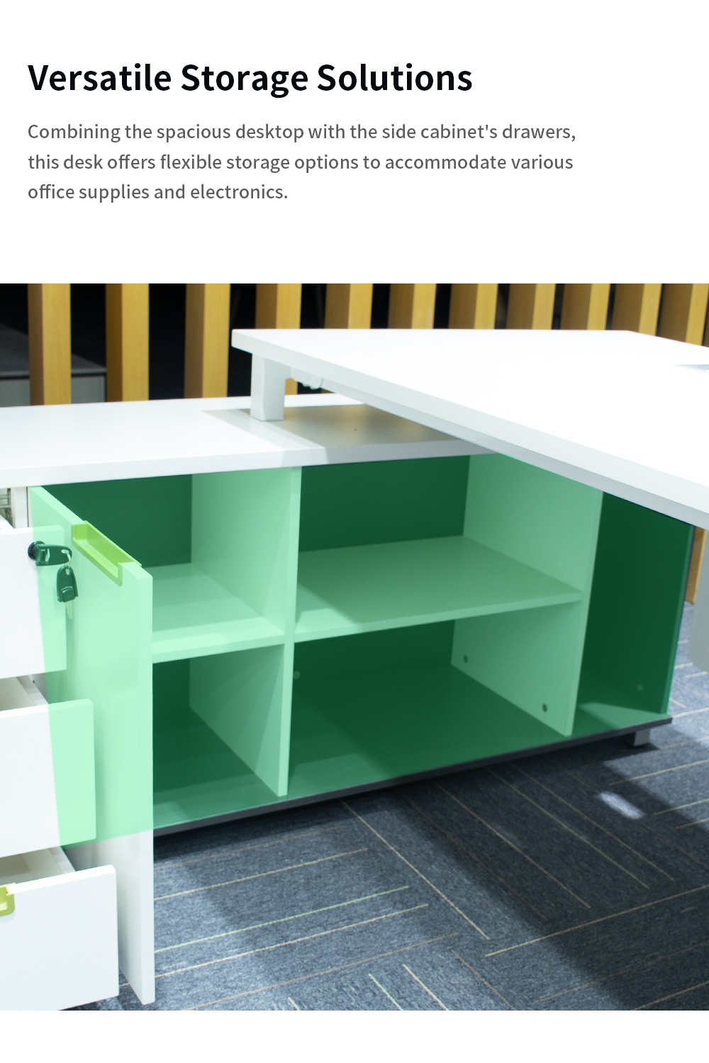 Combining the spacious desktop with the side cabinet's drawers, this desk offers flexible storage options to accommodate various office supplies and electronics.