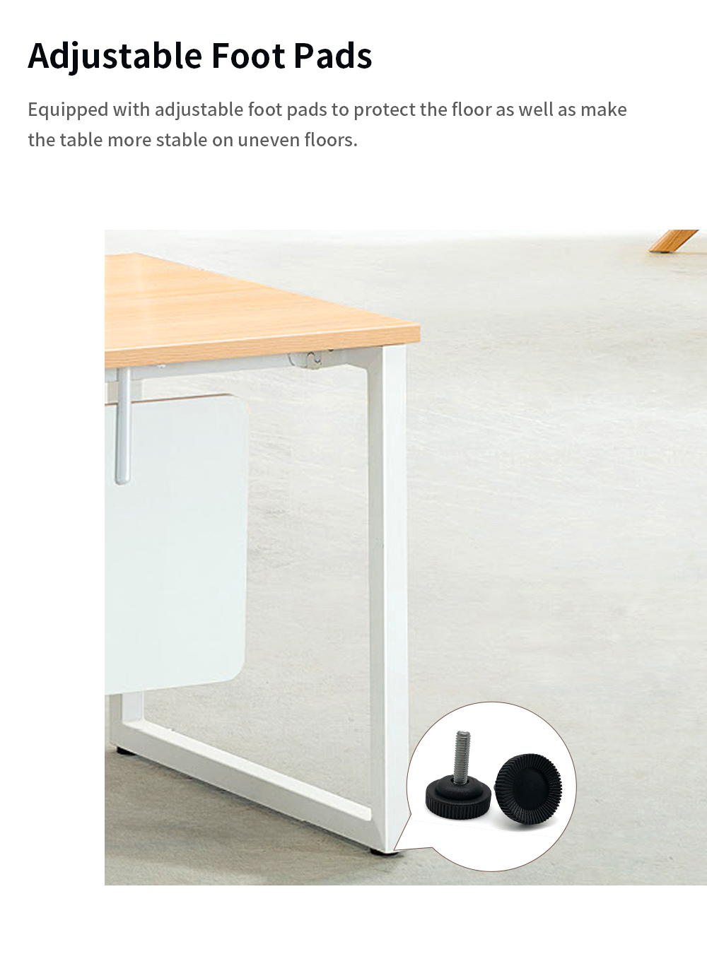 Equipped with adjustable foot pads to protect the floor as well as make the table more stable on uneven floors.