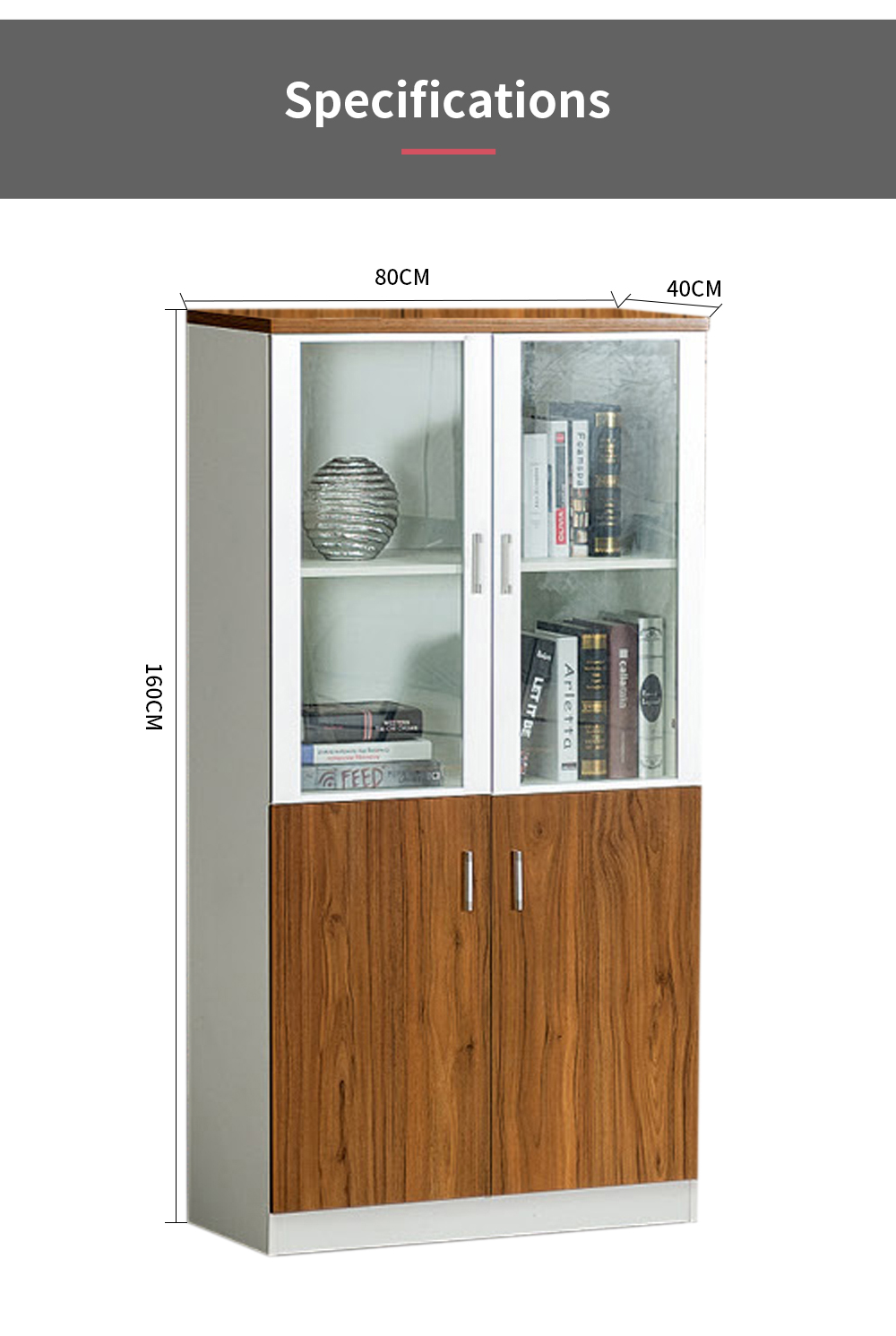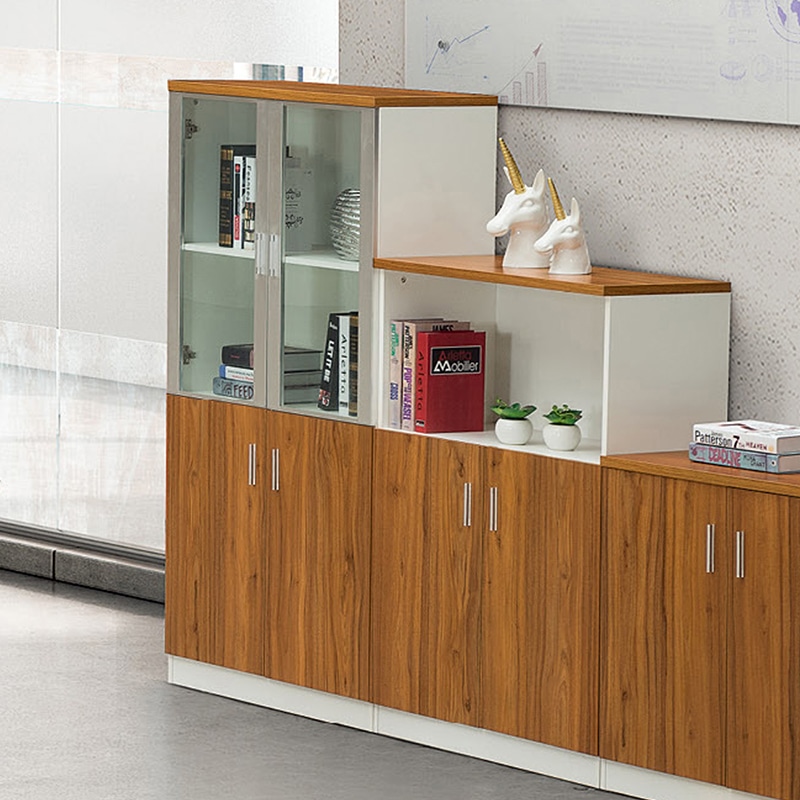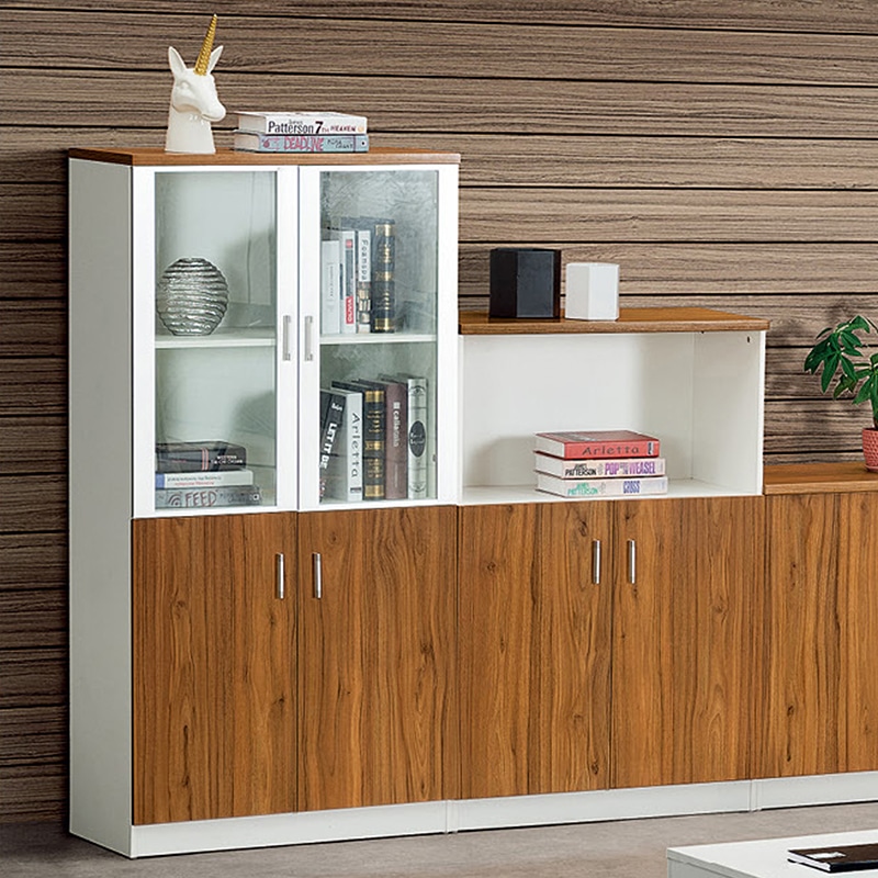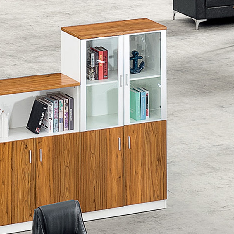 Stylish Modernity: Woodgrain & White Glass-Door Bookcase