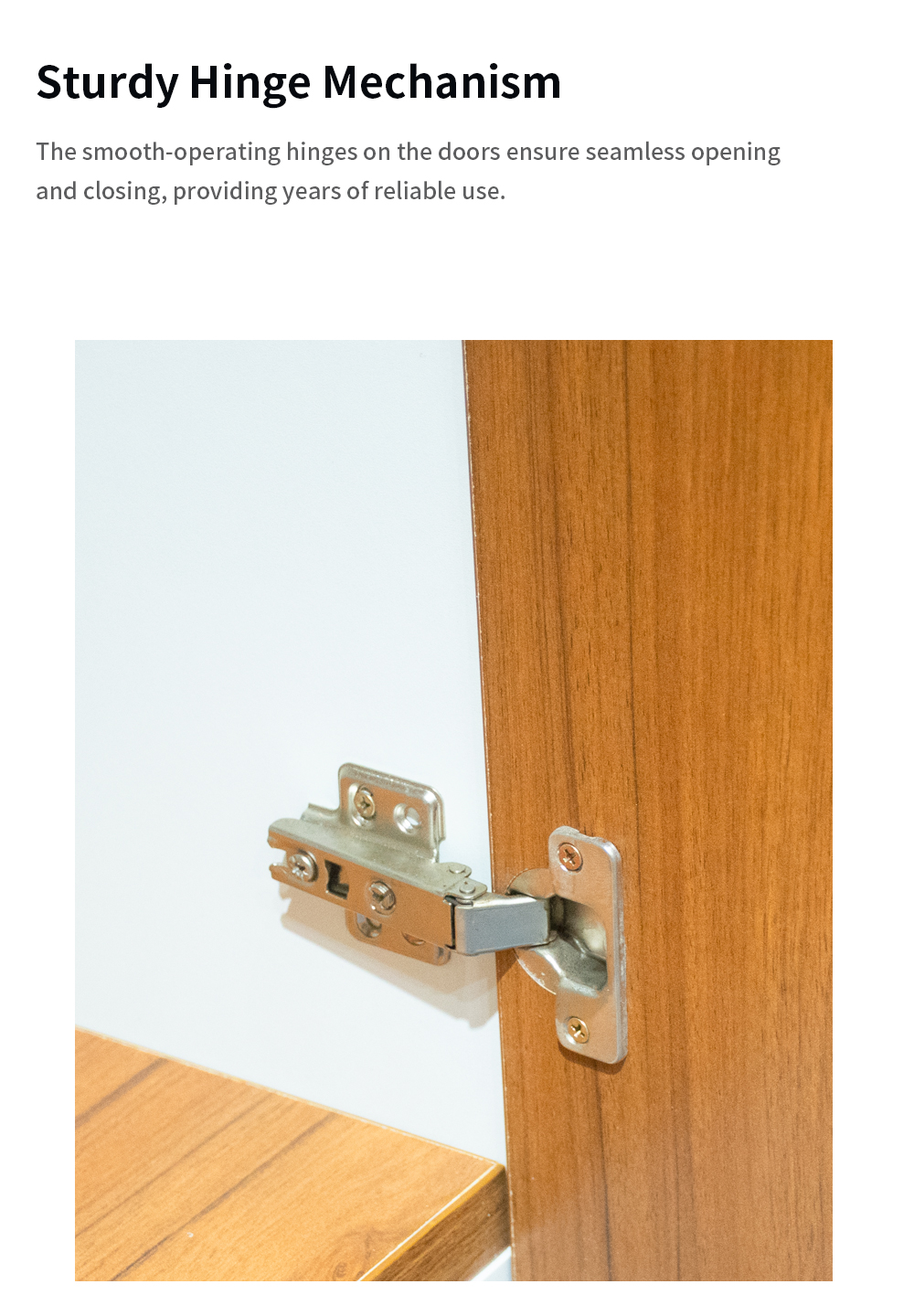 The smooth-operating hinges on the doors ensure seamless opening and closing, providing years of reliable use