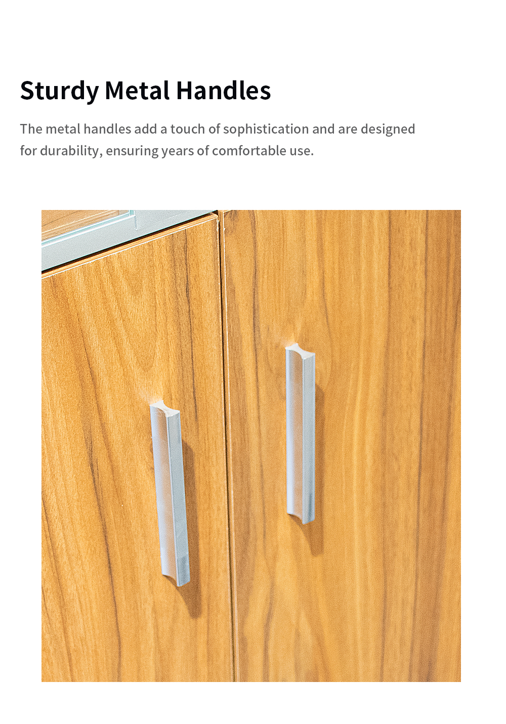 Upper Glass Display Doors: Two sleek glass doors showcase the beauty of your collectibles or books, adding visibility.