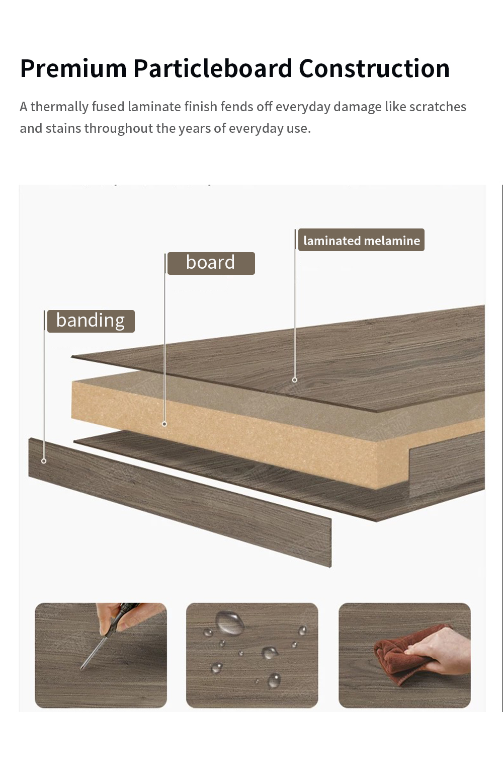A thermally fused laminate finish fends off everyday damage like scratches and stains throughout the years of everyday use.