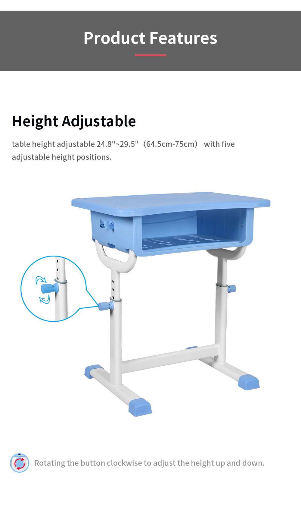 Student desks can adjust the height and quickly meet students of any age (6-18 years old).