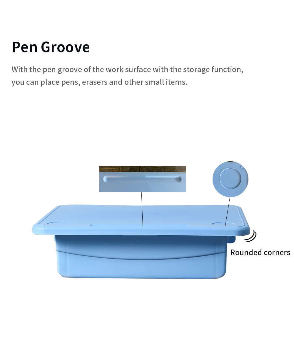With the pen groove of the work surface with the storage function, you can place pens, erasers and other small items.