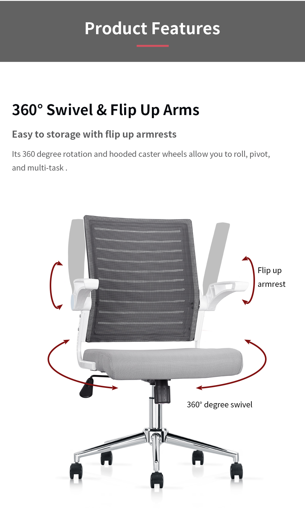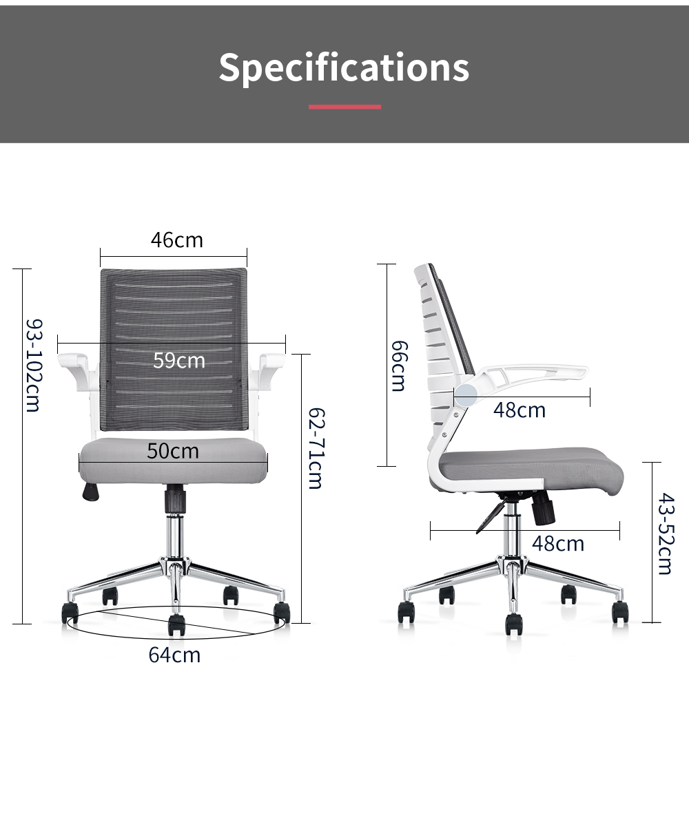 The flip-up arms adjust to meet various needs, allowing you to slide the chair under a desk to save space.