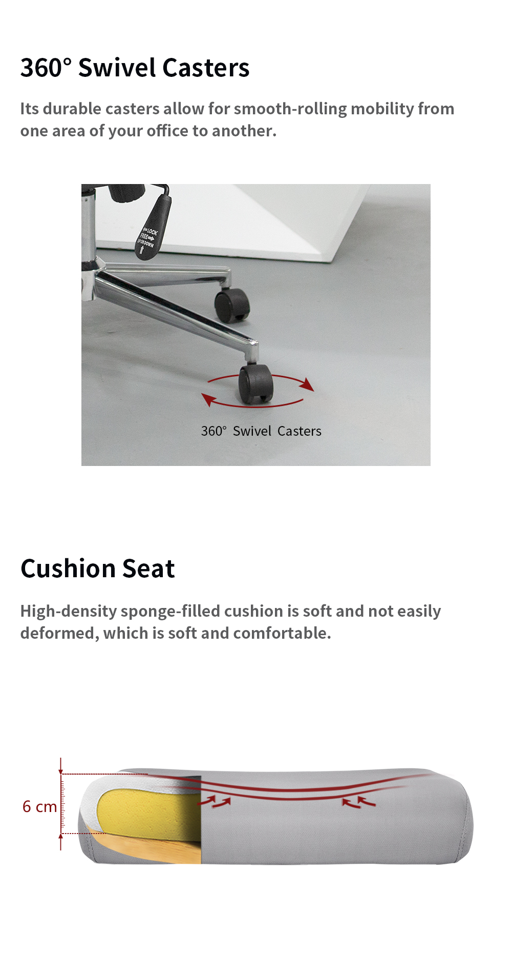Breathable Comfort: High-elasticity mesh cloth on the backrest prevents heat build-up and promotes air circulation.