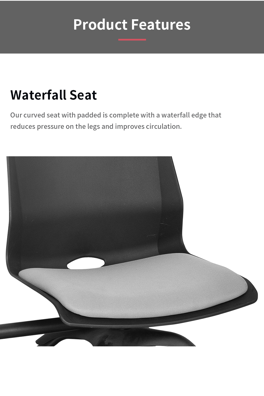 Our curved seat with padded is complete with a waterfall edge that reduces pressure on the legs and improves circulation.