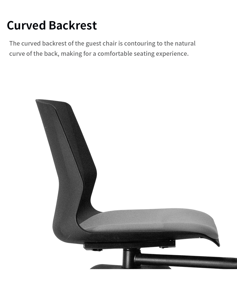 The curved backrest of the guest chair is contouring to the natural curve of the back, making for a comfortable seating experience.