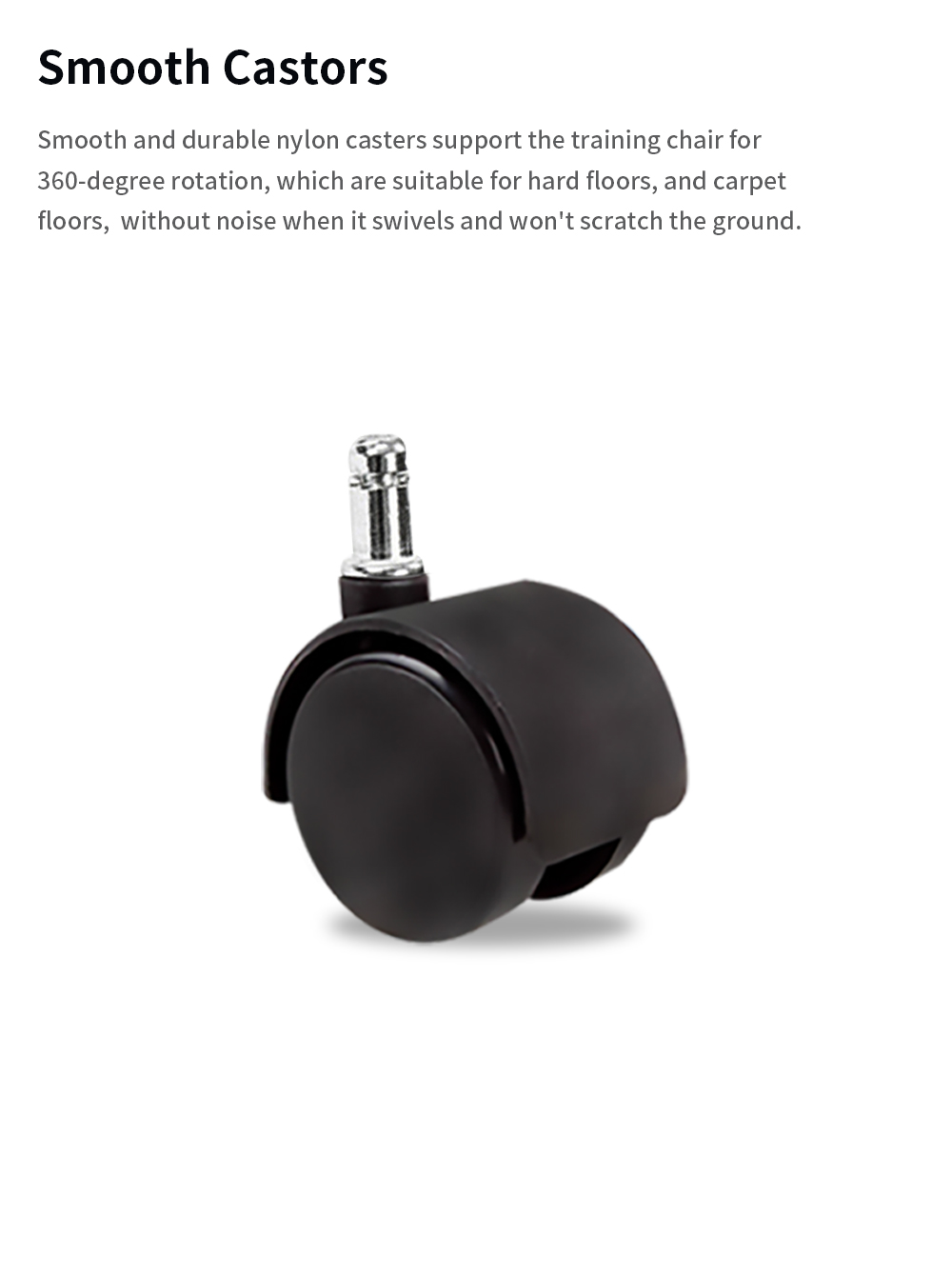 Smooth and durable nylon casters support the training chair for 360-degree rotation, which are suitable for hard floors, and carpet floors, without noise when it swivels and won't scratch the ground.